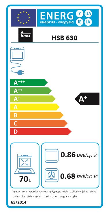 - Енергийна консумация за един цикъл с принудителна циркулация на въздуха (kWh): 0,68