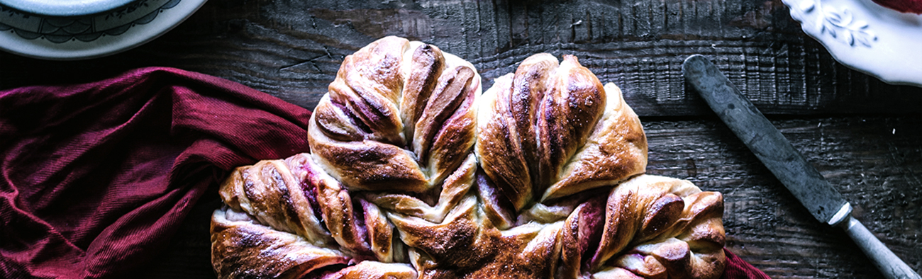 - Now we are going to cut the brioche to shape it like a star. Cut it in 16 triangles, avoid to cut each piece completely, leave the center free.