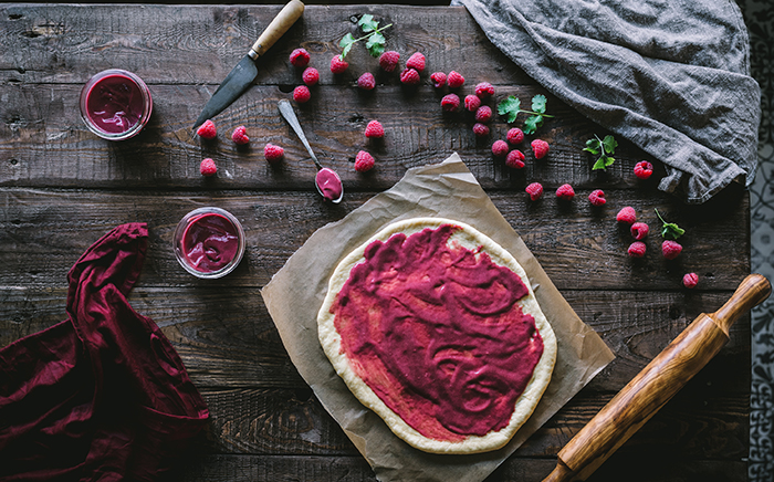 - Cover the dough with the raspberry cream.