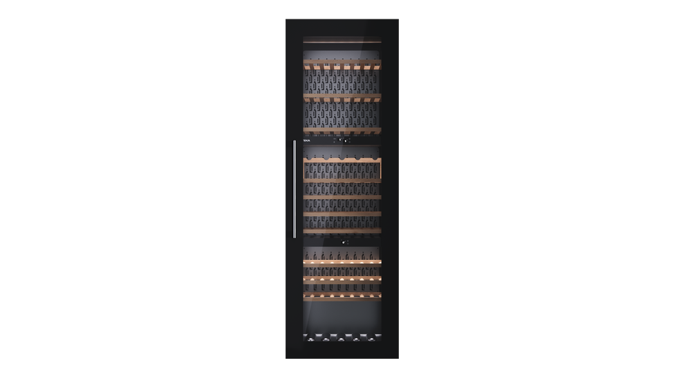 La puerta de doble cristal tintado evita la entrada de la luz y de los rayos UV protegiendo las botellas de un envejecimiento prematuro y de la pérdida de sabor.Sistema anti-vibraciones