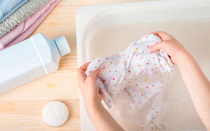 No hay problema por lavar la ropa de bebé en la lavadora pero si quieres lavar la ropa a mano, también puedes hacerlo, asegurándote, eso sí, de que no queda ningún resto de jabón. El lavado a mano está sobre todo recomendado para las prendas más delicadas, aquellas que tienen encajes, puntillas o las que están hechas de tejidos delicados como la organza y el tul. De todas formas, mira bien las instrucciones y programas de tu lavadora porque es probable que tengan programas específicos.