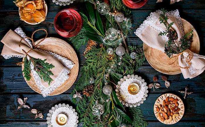 Aprovecha toda la decoración de tu casa para crear una estética personalizada. Velas, centros de mesa y cualquier complemento que puede darle un toque de estilo a la mesa. Recuerda ser coherente, aquí también, menos es más.