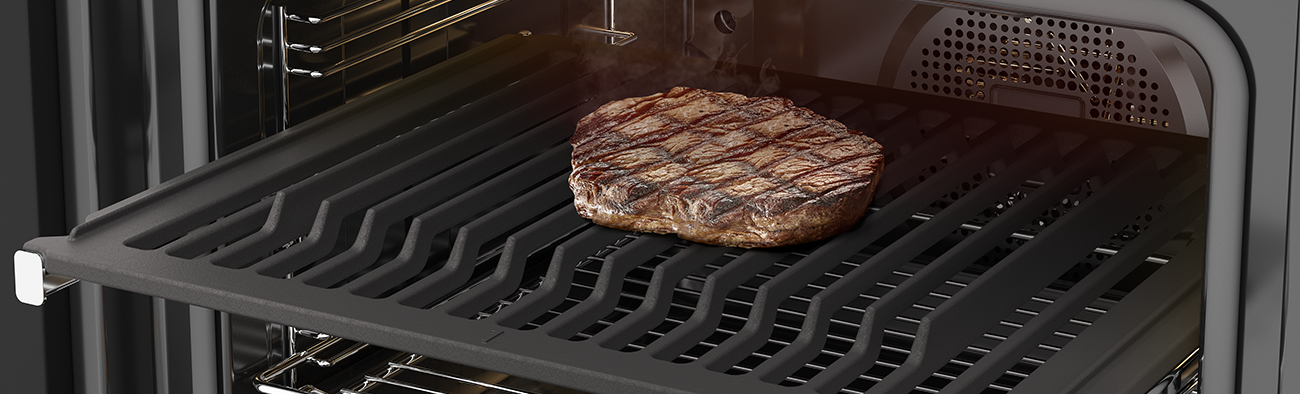 Do: coloca la bandeja profunda en la posición más baja del horno, así tus carnes quedarán perfectamente hechas por fuera y jugosas y muy sabrosas en su interior. Además, en esa posición, tienes un mayor control del proceso y corres menos riesgo de que se queme.