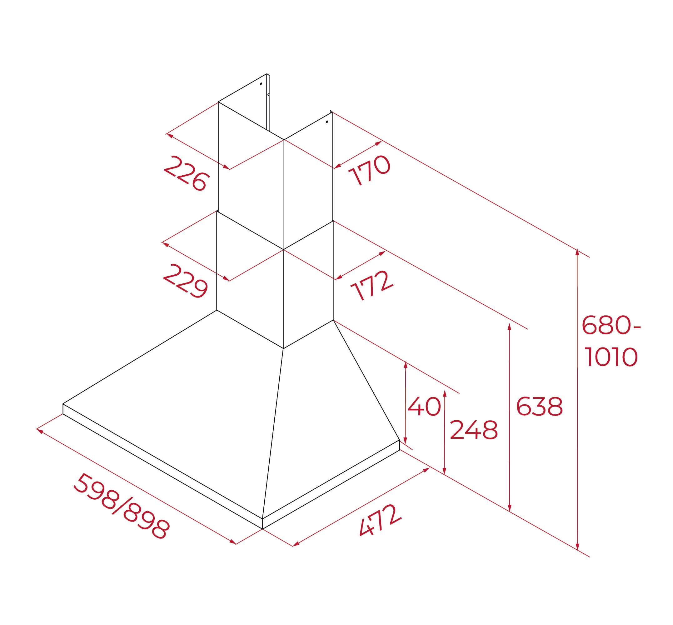 Campana Piramidal de pared de 60 cm con mandos pulsantes