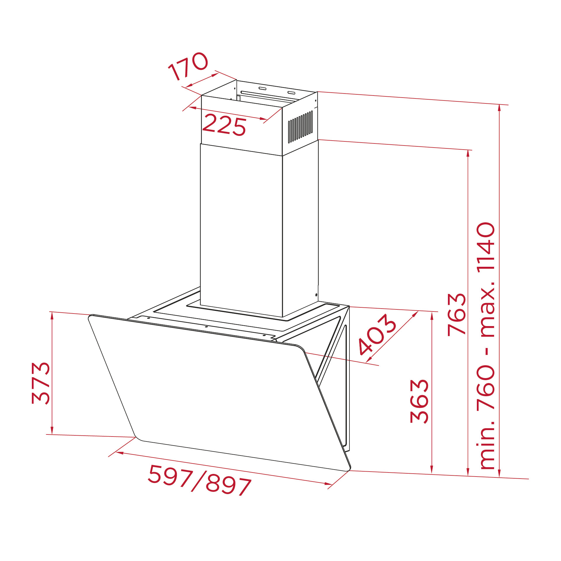 Campana Decorativa Vertical de 60 cm, color Negro – 3 Velocidades + intensivo, LED