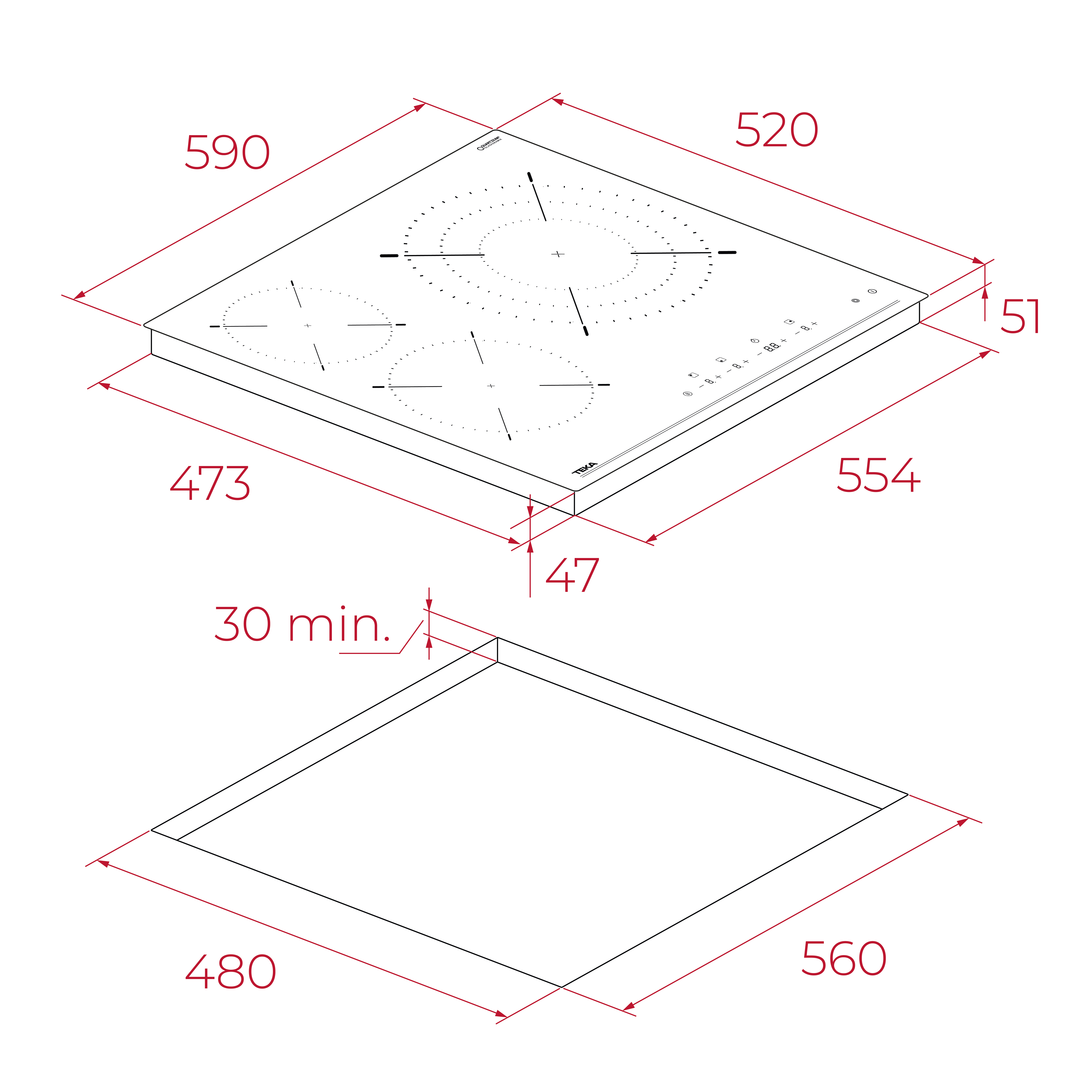 Vitrocerámica de 60 cm con 3 zonas y Touch Control
