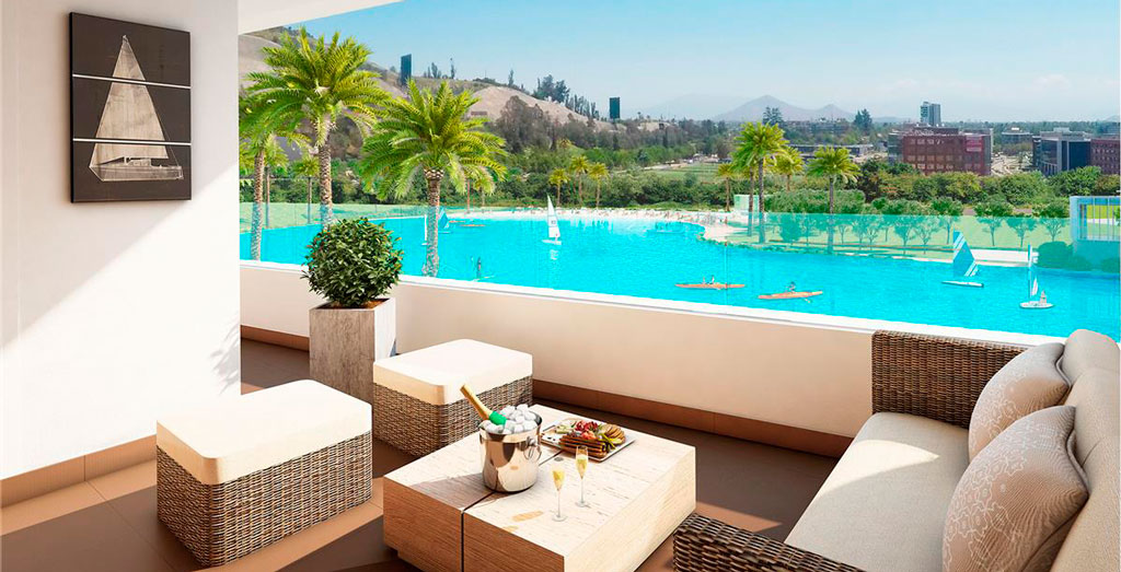 Progetto residenziale nel quartiere Huechoraba, a Santiago del Cile. Il complesso ospiterà il primo lago artificiale navigabile, con una superficie di 10.000 metri quadrati.