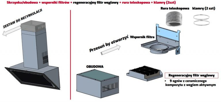 - Zestaw do recyrkulacji z filtrem standardowym – okapy DLV i DVT z osłoną kominową