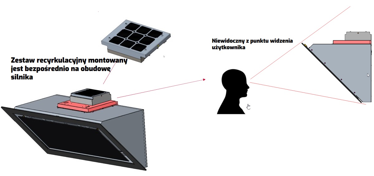 - Zestaw do recyrkulacji z filtrem regeneracyjnym – okapy DLV i DVT do montażu na osłonę kominową