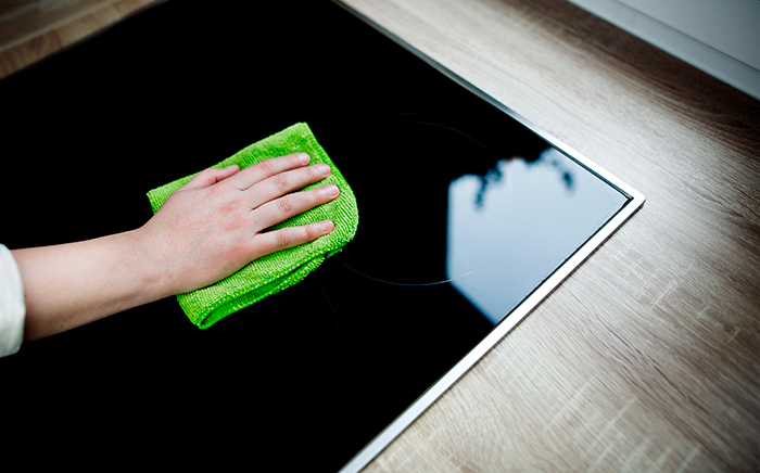 Quando limpar a placa de vitrocerâmica, certifique-se de que está desligada e fria, assim, torna-se muito mais fácil de limpar.
