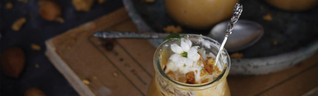 Pode servir com natas batidas por cima e pedaços de nougat.