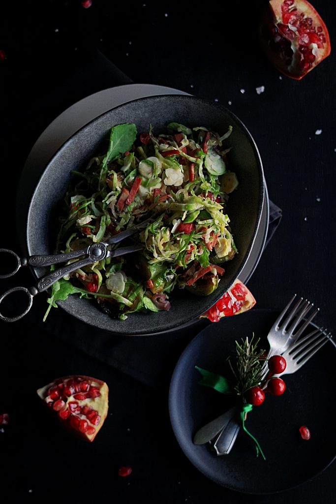 Uma maneira diferente de comer couve de bruxelas. Pode fazer esta salada com antecedência e aquecê-la ligeiramente antes de servir.