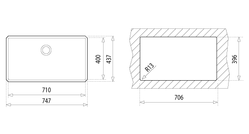 Lava-louças sob tampo BE LINEA R15 71.40 Inox