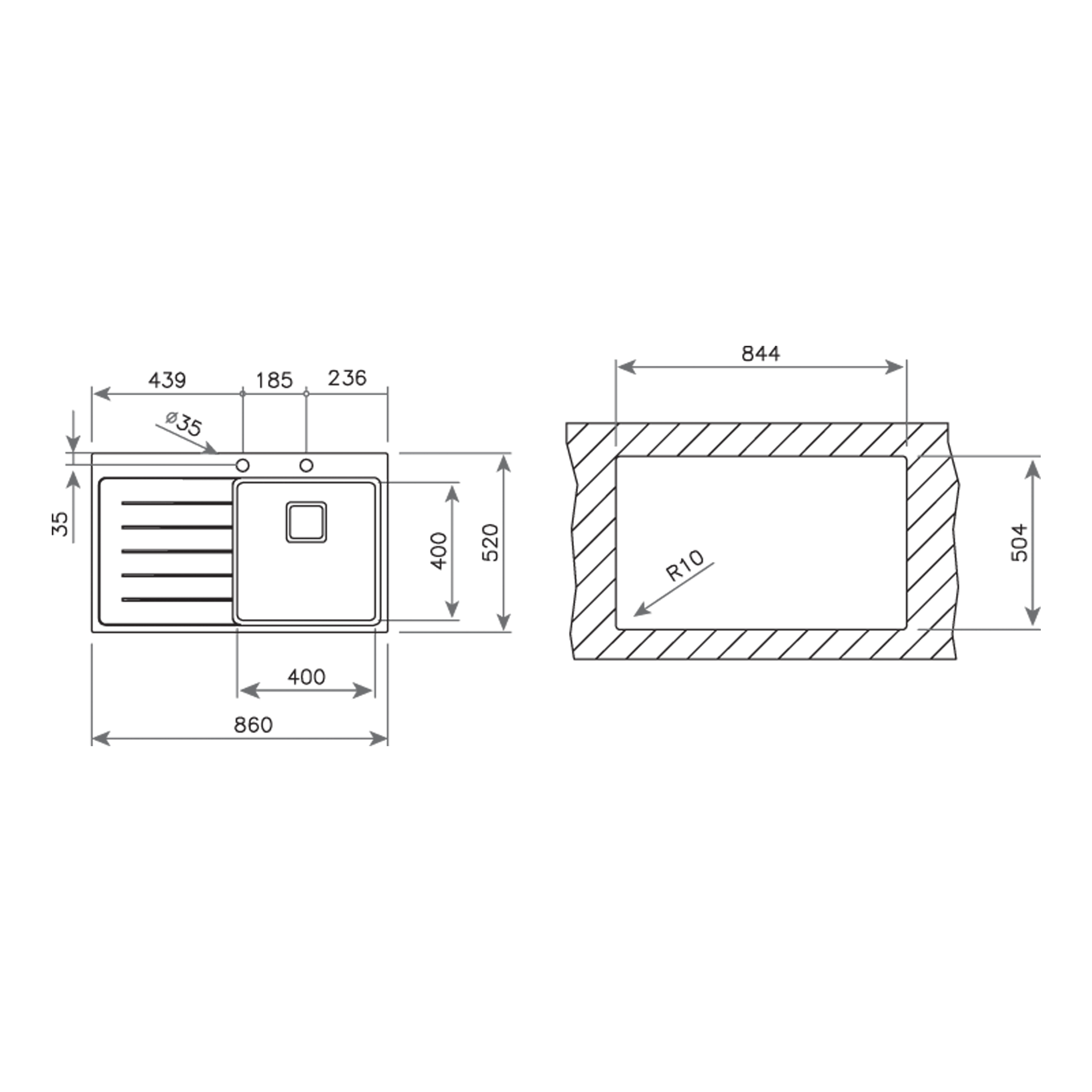 - Versões com escorredor à direita (D) ou à esquerda (E)