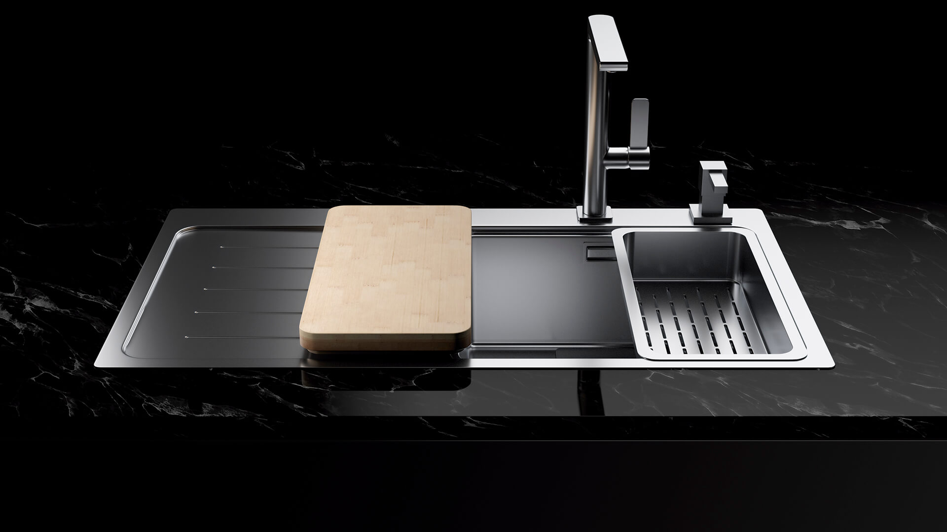 Chậu rửa Teka bao gồm thêm các phụ kiện đi kèm như thớt gỗ và giá để đồ
