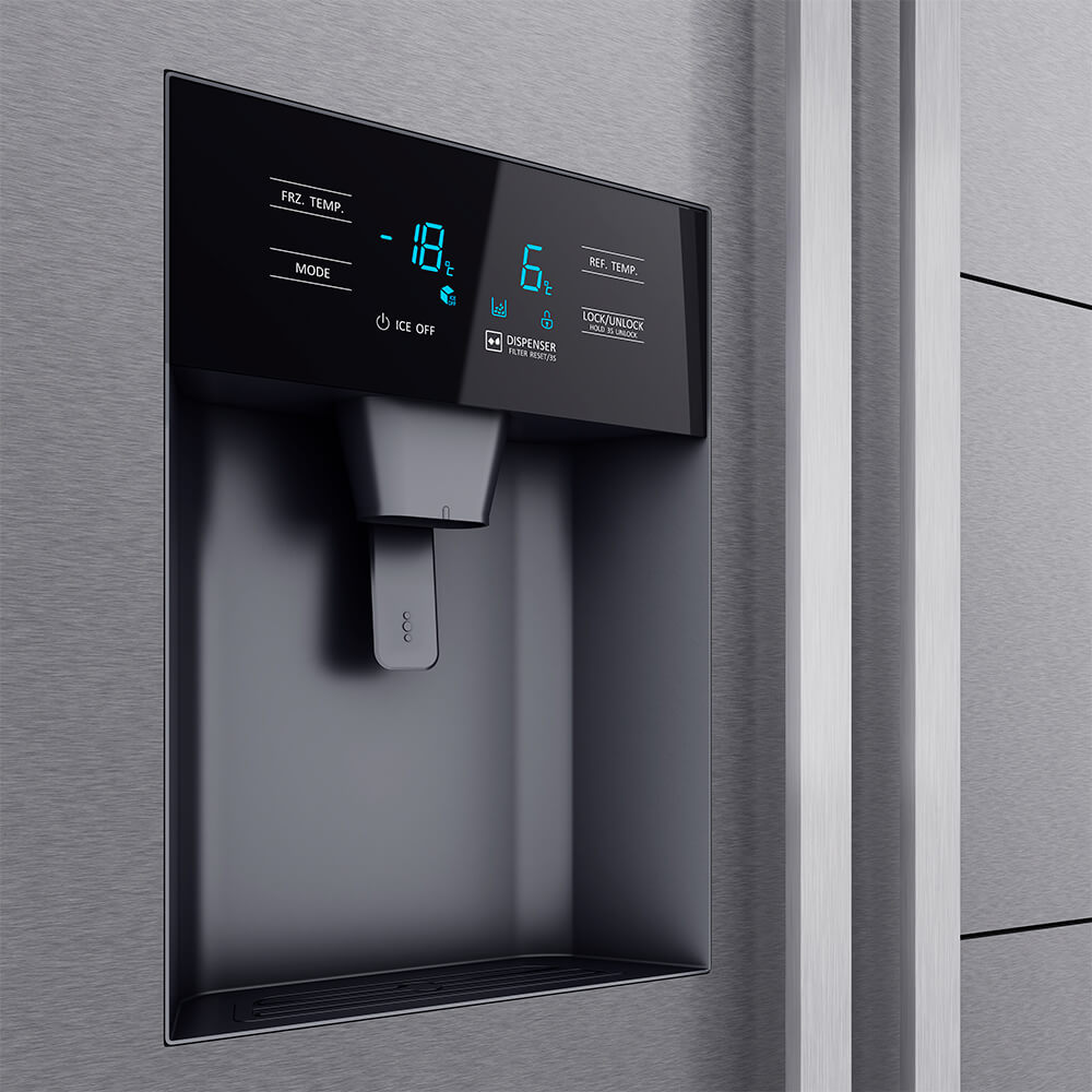 Tủ lạnh side by side Teka có bảng điều khiển nhiệt độ ngay trên cánh cửa